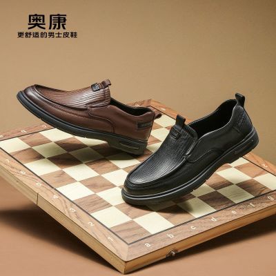 百亿补贴:奥康男鞋透气一脚蹬真皮商务皮鞋舒适新款软底男士防滑休闲爸爸鞋