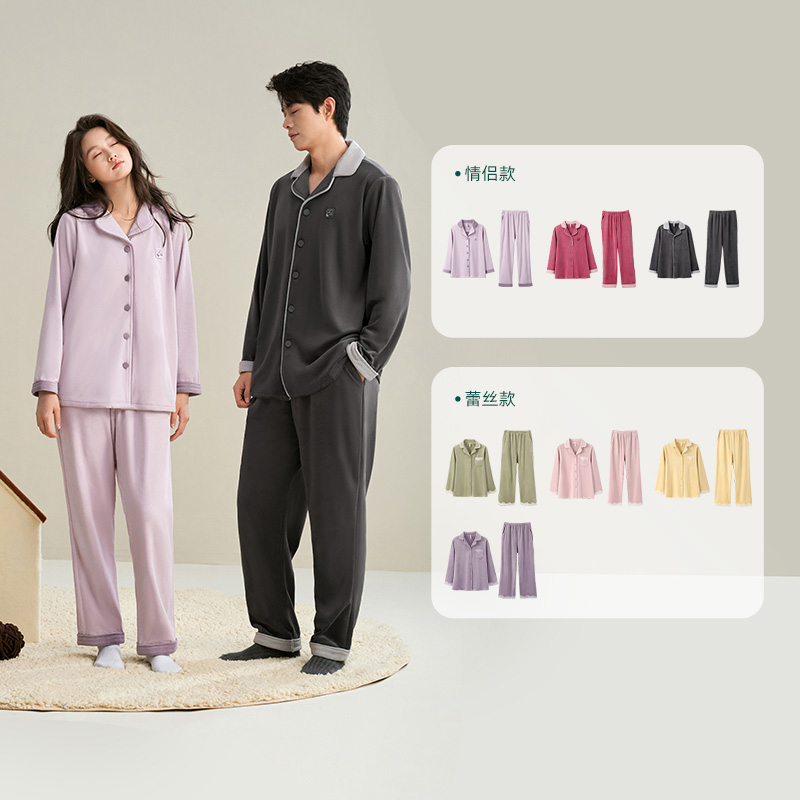 A秋黄色-蕾丝 M 【所有姐姐的衣橱直播间 】安之伴情侣海岛绒睡衣可外穿家居服