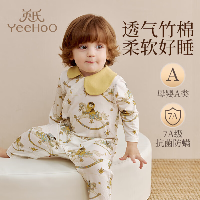 百亿补贴:YeeHoO LUXURY英氏婴儿睡袋竹棉春夏季薄款宝宝睡衣儿童长袖分腿防踢被 游乐小镇 长袖翻领斜开睡袋 90码