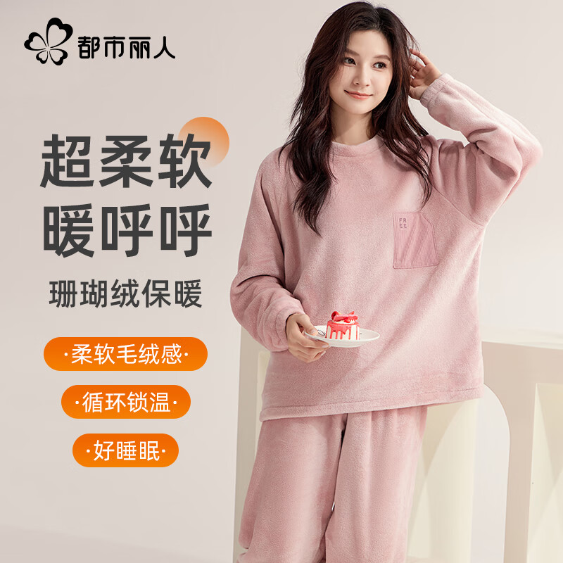 百亿补贴:都市丽人法兰绒睡衣女2025新款秋冬季加绒加厚保暖珊瑚绒套头家居服套装