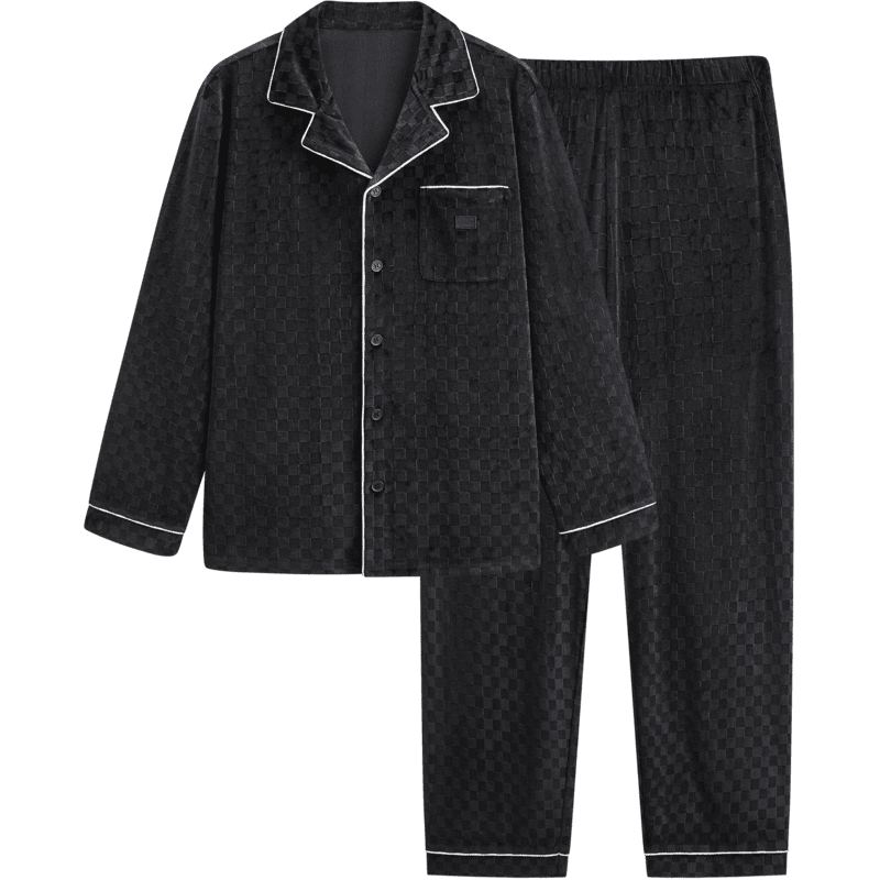 冬季GXG男士海岛绒棋盘格家居服套装轻薄情侣睡衣易打理
