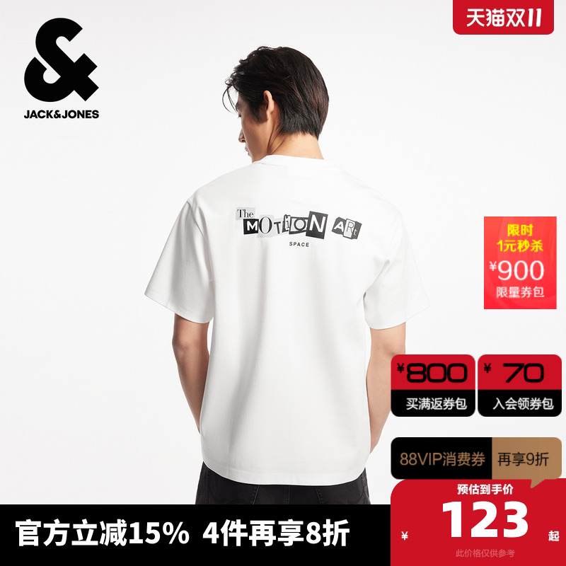 A06雪白色 170/92A/S 杰克琼斯奥特莱斯夏季新款植绒字母英文图案男士短袖T恤男款男装