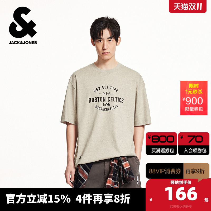 G63砂色花灰色 165/88A/XS 杰克琼斯NBA联名款夏季新款凯尔特人队立体字母纯棉短袖T恤男装