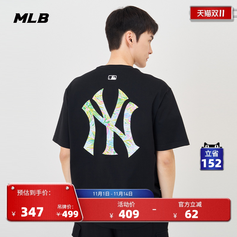 聚划算:MLB官方 男女情侣圆领T恤宽松印花涂鸦logo短袖TSX05
