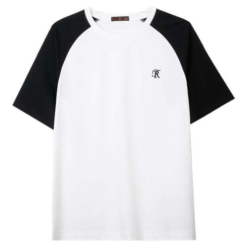 黑色 46 才子男装黑白撞色短袖T恤男2025夏季新款透气插肩袖宽松半袖上衣