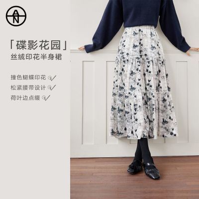 百亿补贴:AN大码女装蝴蝶印花丝绒半身裙冬季新款微胖mm遮胯显瘦A字中长裙