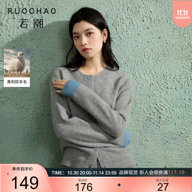 3COLOUR 三彩 大码女装 圆领针织衫毛开衫 胖MM