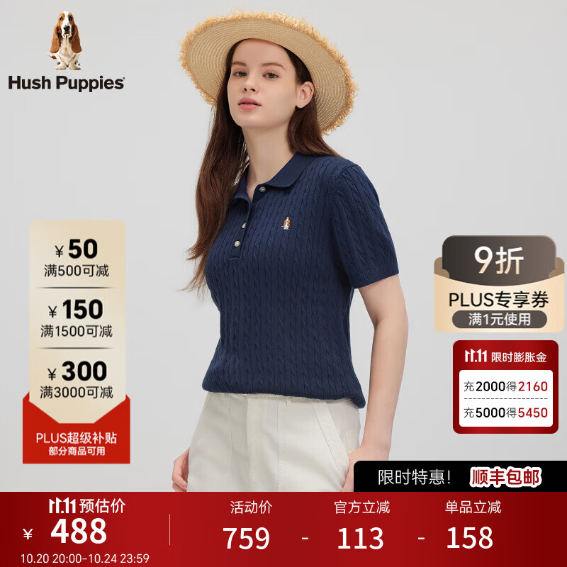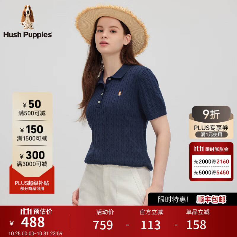 暇步士(Hush Puppies)【细腻柔软】女装2025夏季舒适百搭气质短袖POLO衫 灰蓝色 L