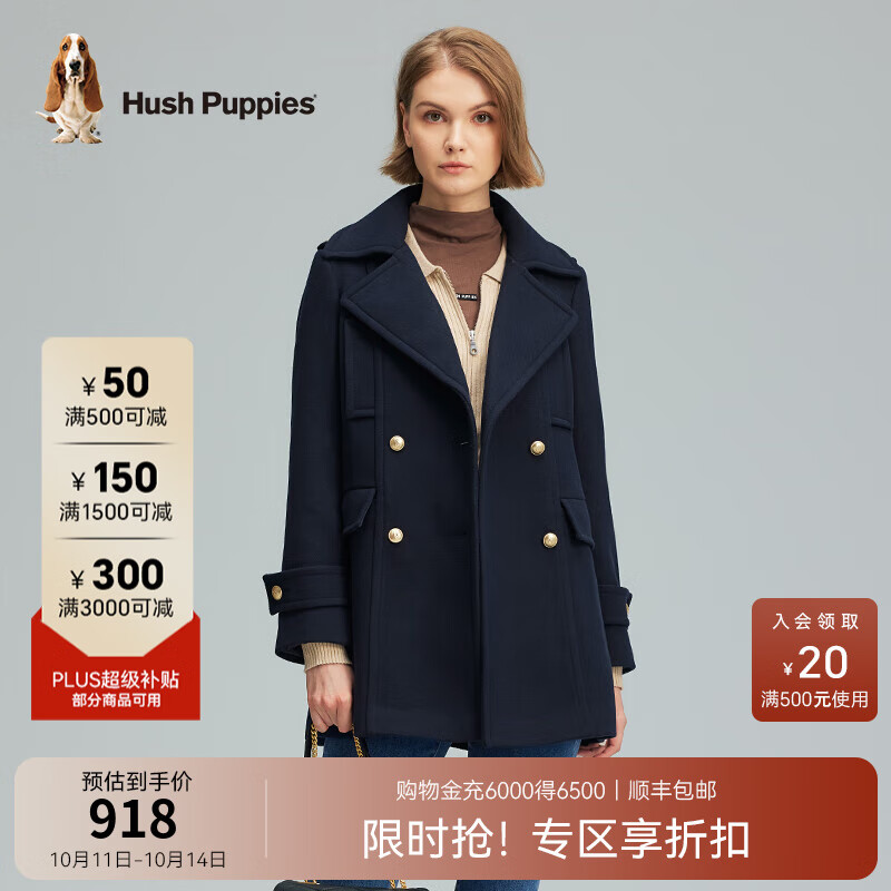 暇步士(Hush Puppies)女装秋季新款简约通勤百搭毛呢大衣外套女 196深蓝 L