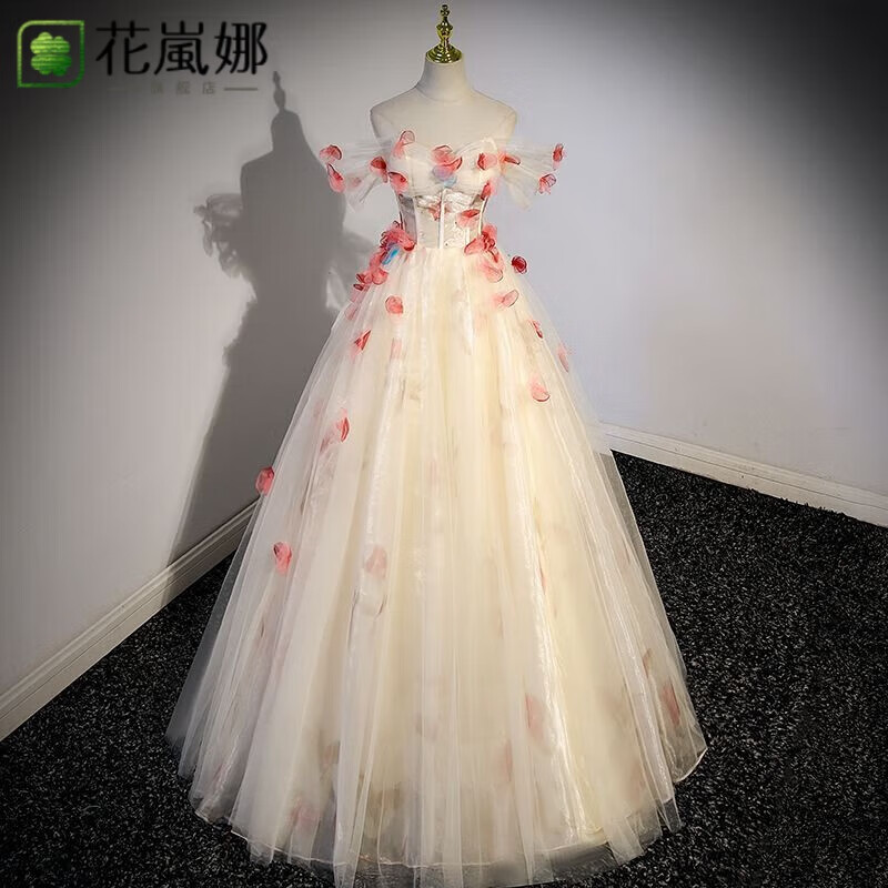 花岚娜(HUALANNA)晚礼服感轻婚纱宴会气质在逃公主轻奢小众高端主持人裙女超仙 图片色长版 L