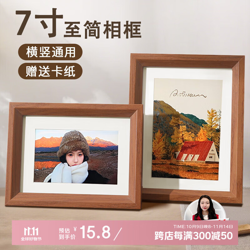 爱墨绘相框挂墙7寸北欧风木纹画框照片墙结婚礼物婚纱照儿童照片框摆台