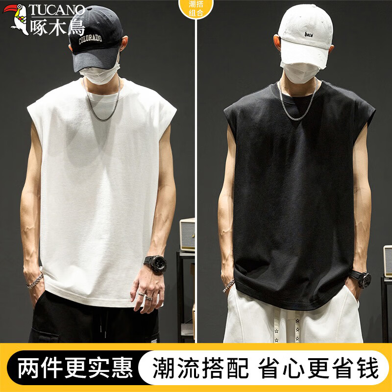 百亿补贴:啄木鸟美式坎肩背心男夏季新款潮牌宽松纯棉无袖t恤健身运动外穿打底衫 【两件装】白色+黑色 L 【建议105-120斤】