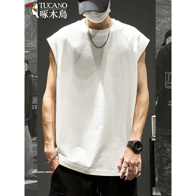 百亿补贴:啄木鸟美式坎肩背心男夏季新款潮牌宽松纯棉无袖t恤健身运动外穿打底衫 【单件装】白色 L 【建议105-120斤】