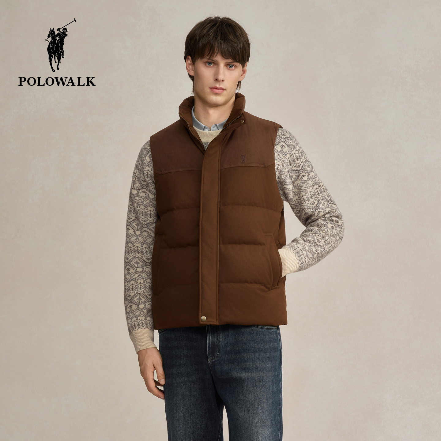 咖色 170/M POLOWALK男式羽绒马甲2025冬季新品90鸭绒简约立领保暖背心外套男