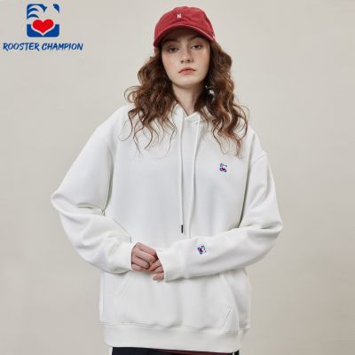 百亿补贴:公鸡冠军白色连帽重磅卫衣男秋季新款美式复古落肩刺绣上衣W21659