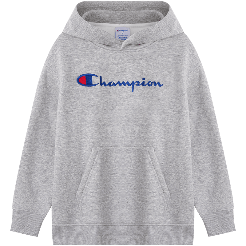 Champion冠军卫衣春秋加绒基础刺绣小C连帽套头情侣卫衣男女 浅灰色 M
