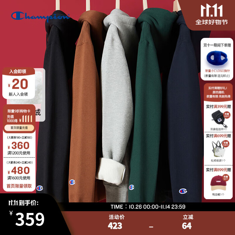 Champion冠军男女童加绒连帽卫衣2025秋季新款休闲复古学院风儿童上衣外套