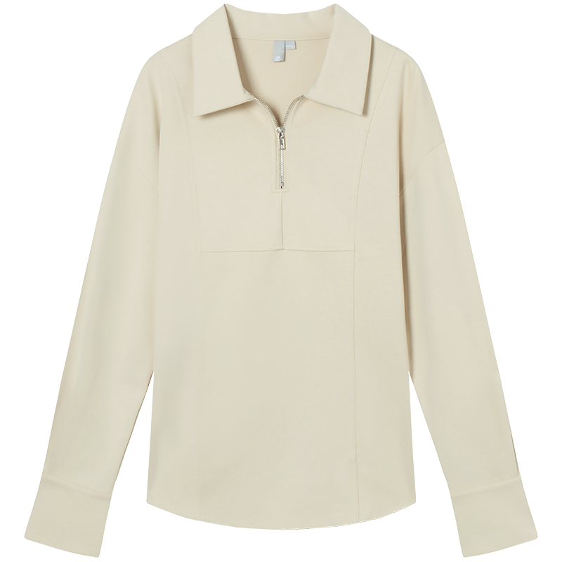 对白 2025春秋美式宽松休闲翻领拉链设计衬衫式袖口女式卫衣
