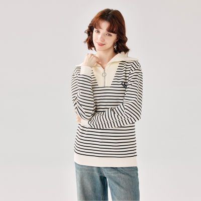 百亿补贴:2025秋款新半拉链女式上衣翻领条纹卫衣减龄感百搭针织卫衣女