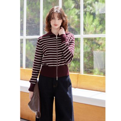 百亿补贴:2025秋款女式翻领卫衣条纹针织外套百搭毛衣休闲针织衫女