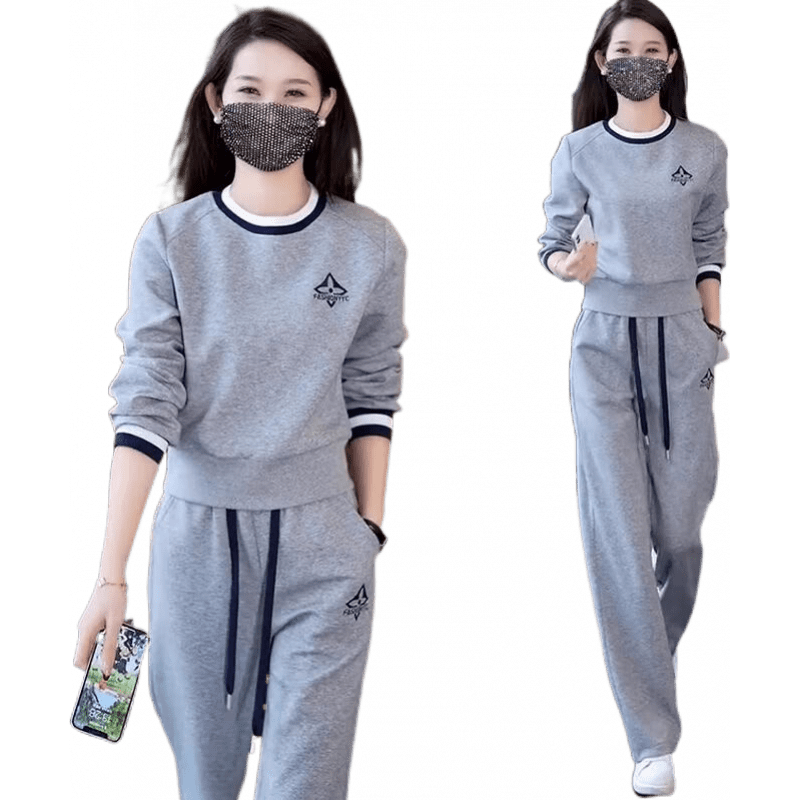 啄木鸟小个子洋气时尚套装2025春秋季新款休闲运动服宽松显瘦卫衣两件套 灰色【上衣+裤子】套装 M 建议80-100斤