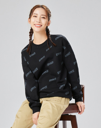 鸿星尔克 女式套头卫衣圆领套头衫秋季印花女上衣棉质卫衣时尚百搭卫衣女装