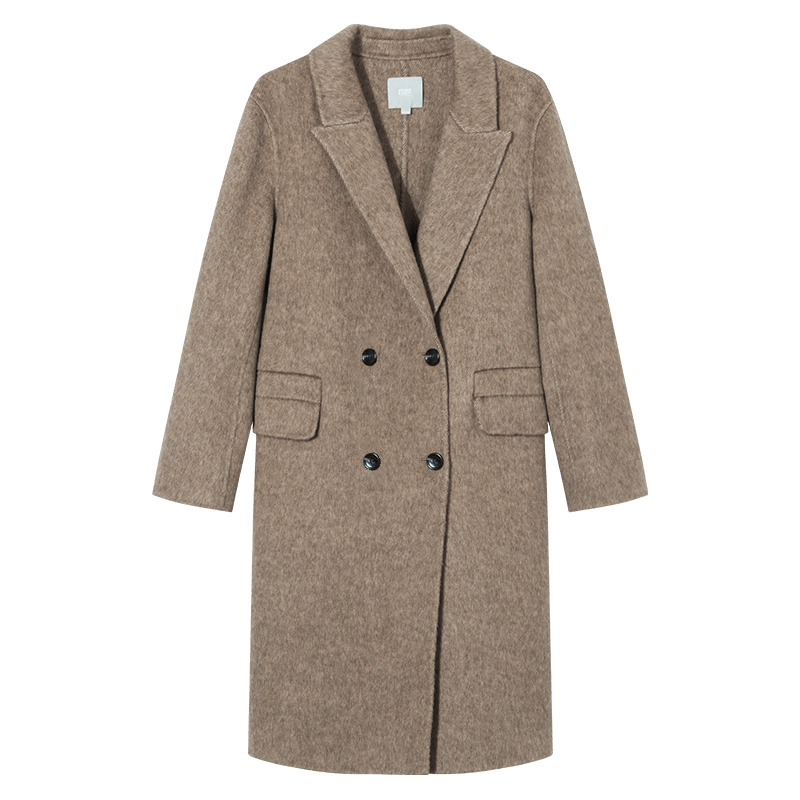 对白 【杜鹃同款】冬装羊毛双面呢西装领女式长款毛呢大衣