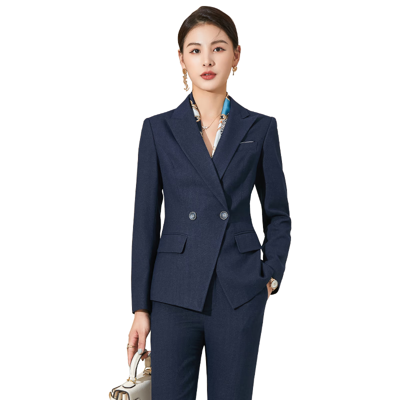 德玛纳【智趣精英套装】秋季翻驳领垫肩收腰西装藏肉气质西裤女式两件套