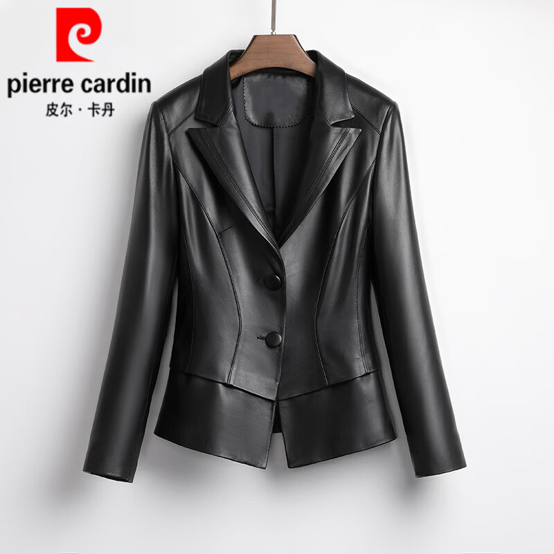 皮尔卡丹(pierre cardin)2025年春秋新款海宁真皮夹克女式羊皮短夹克小西装套装 黑色 3XL
