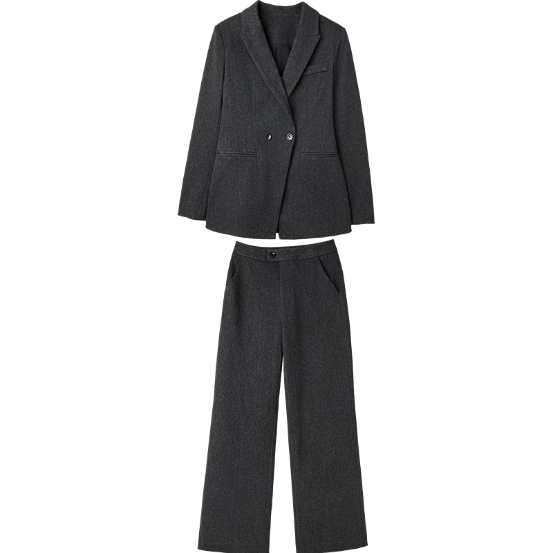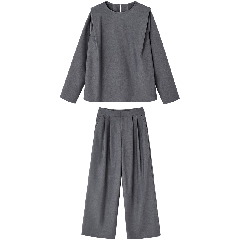 德玛纳【智系格雷套装】秋季设计感垫肩圆领上衣阔腿西装裤女式两件套