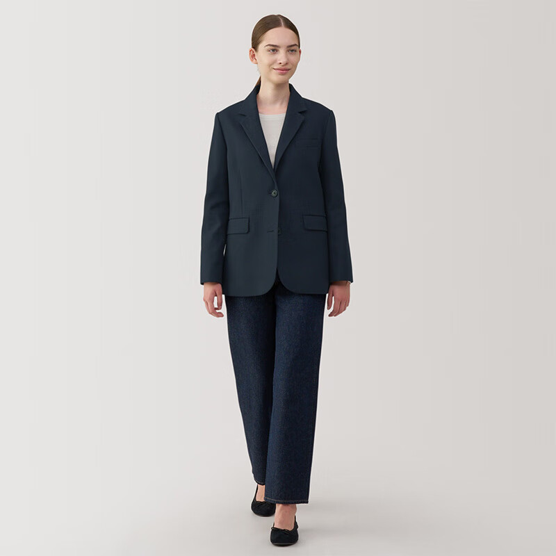 无印良品(MUJI)女式 起毛 西装领夹克 女外套秋冬款 女装 休闲 小西服BD0ZDC4A 深藏青色 M 160/84A