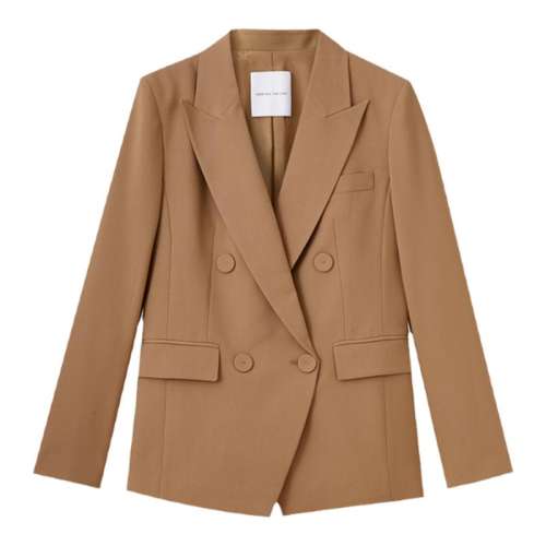 卡其 L 水云间戗驳领双排扣小西装外套女式秋季新款2025时尚通勤长袖西服