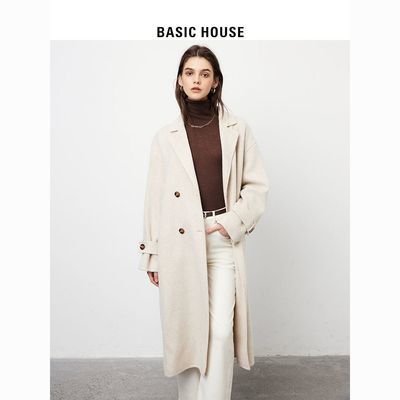 百亿补贴:Basic House/百家好西装领毛呢外套女2024冬季韩版收腰双排扣大衣