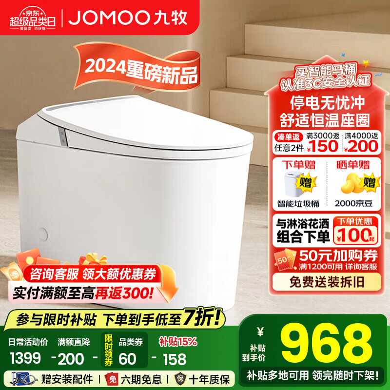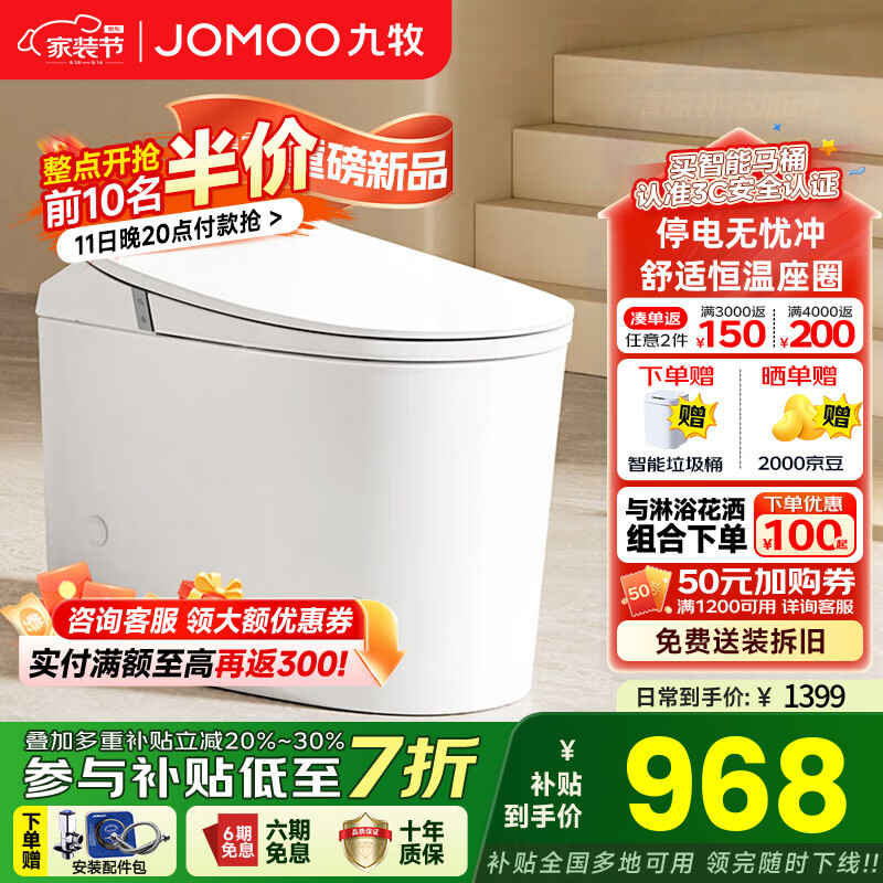 九牧(JOMOO)轻智能马桶家用防臭虹吸式静音坐便器小户型自动冲水抗菌电子马桶 恒温座圈自动冲水SQ5342 305/300mm