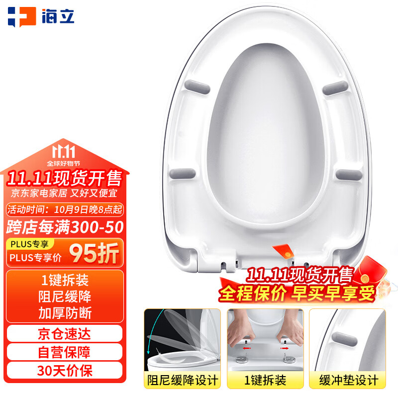 海立819脲醛V型马桶盖通用老式坐便器垫圈上装缓降加厚座厕所板子配件