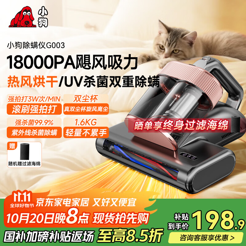 小狗除螨仪家用床宝 大吸力床上吸尘除螨一体机 双杯尘螨分离60℃热风烘干紫外线杀菌除螨吸尘器 G002