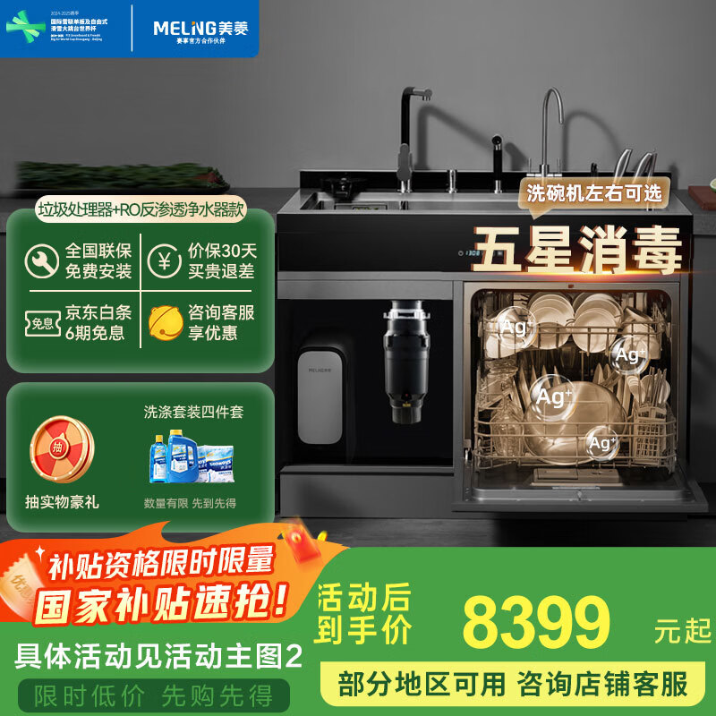 美菱(MeiLing)集成水槽洗碗机一体厨房嵌入式超声波水槽 大容量13套五星消毒 RO反渗透净水器1050mm 旗舰款JS62+垃圾处理器+RO反渗透净水器