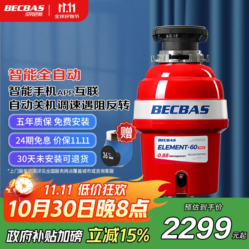 贝克巴斯(BECBAS) E60PRO 厨余垃圾处理器全自动进水调速关机 智能家居互联