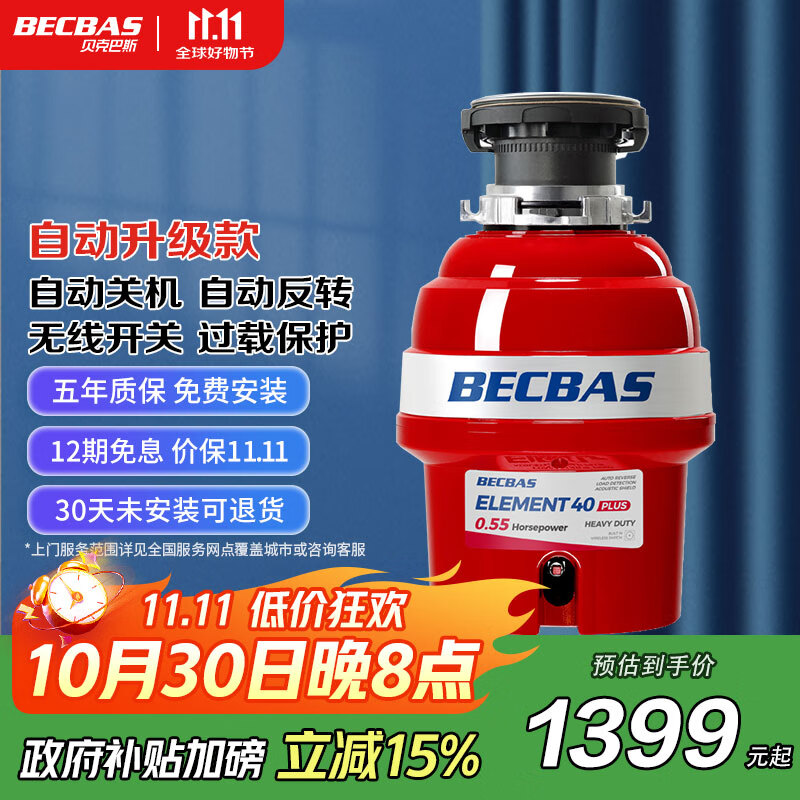 百亿补贴:贝克巴斯 E40 家用厨房食物垃圾处理器