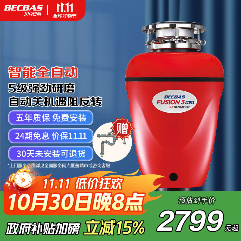 贝克巴斯(BECBAS)家用智能垃圾处理器厨余粉碎机自动关机F3PLUS