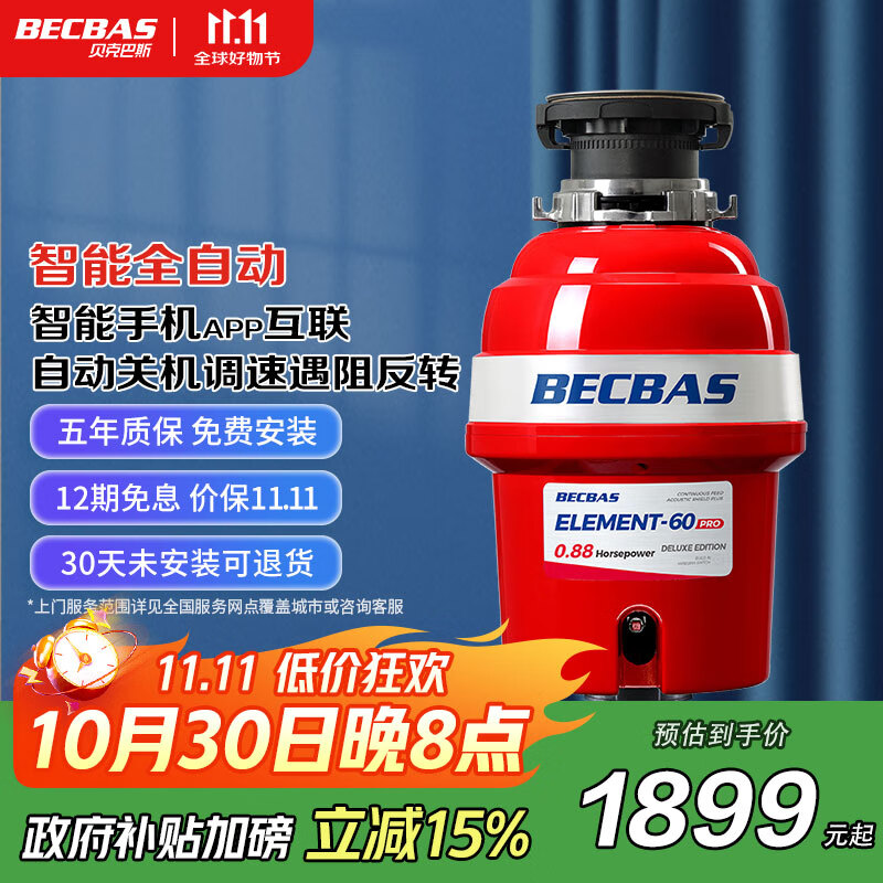 贝克巴斯(BECBAS)E60PRO 全自动智能垃圾处理器 智联出水调速关机 米家app智能家居