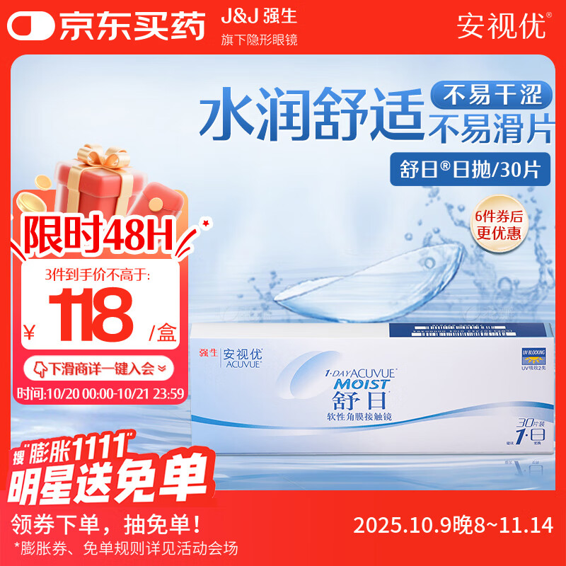 强生(Johnson) 隐形眼镜 日抛 水凝胶进口 安视优 舒日30片装 650度