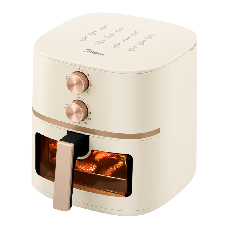 美的(Midea)空气炸锅不用翻面 微蒸汽嫩烤 家用全自动大容量实用 多功能炸锅金属腔体不沾易洗 炸烤箱一体 【超大可视窗|双旋免翻面】5089- 5L