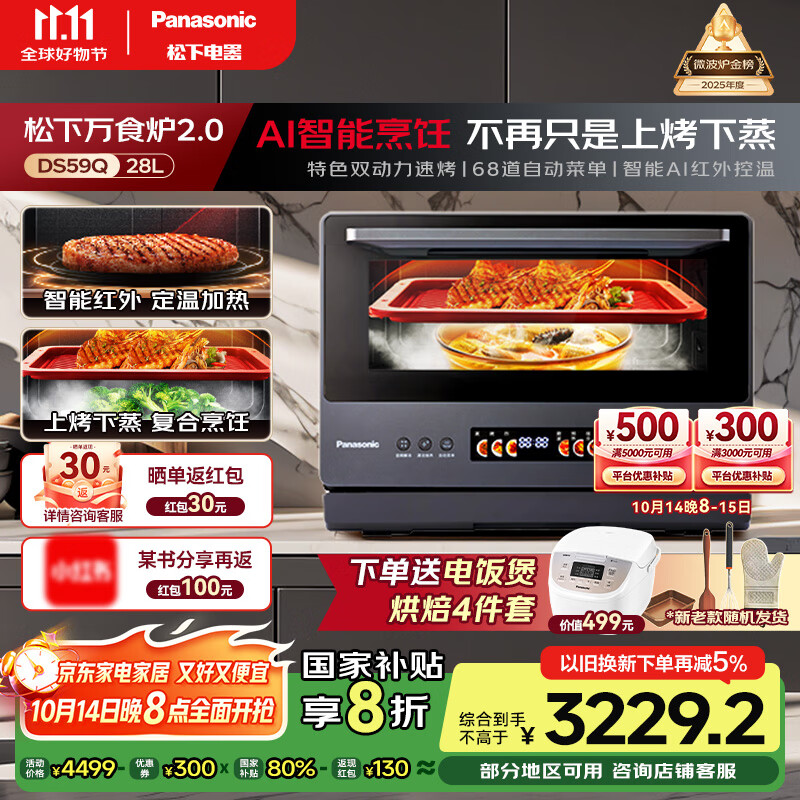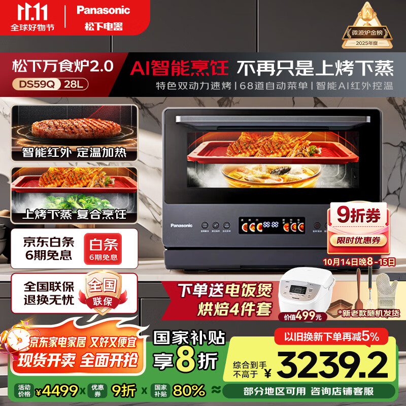 松下新品万食炉微蒸烤炸炖一体机台嵌两用家用烤箱28L微波炉DS285