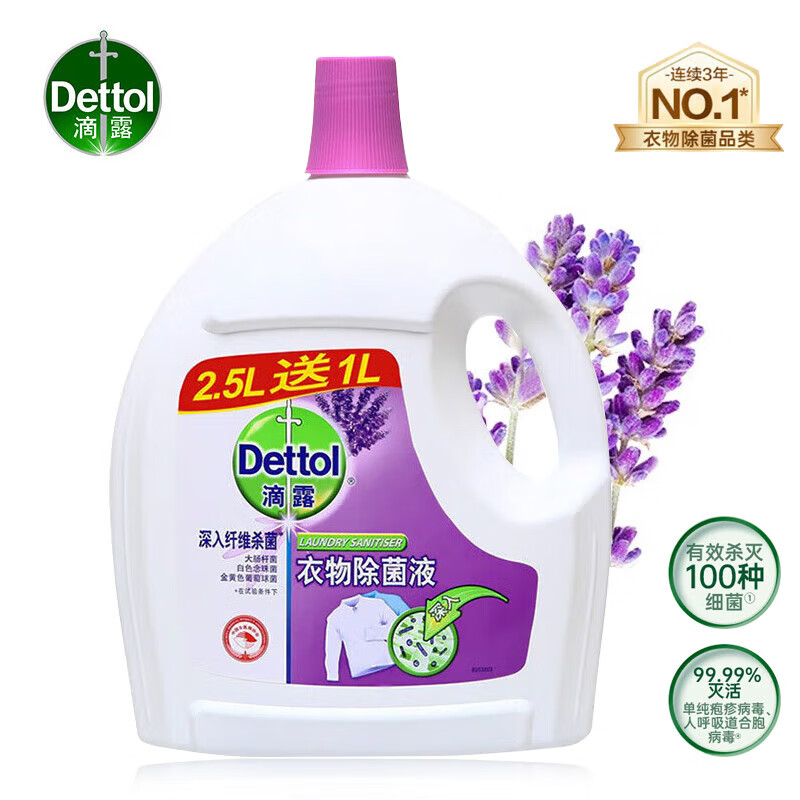 滴露(Dettol) 衣物消毒液薰衣草3.5L 除菌液99.9%杀菌 高效除螨 可配洗衣液用