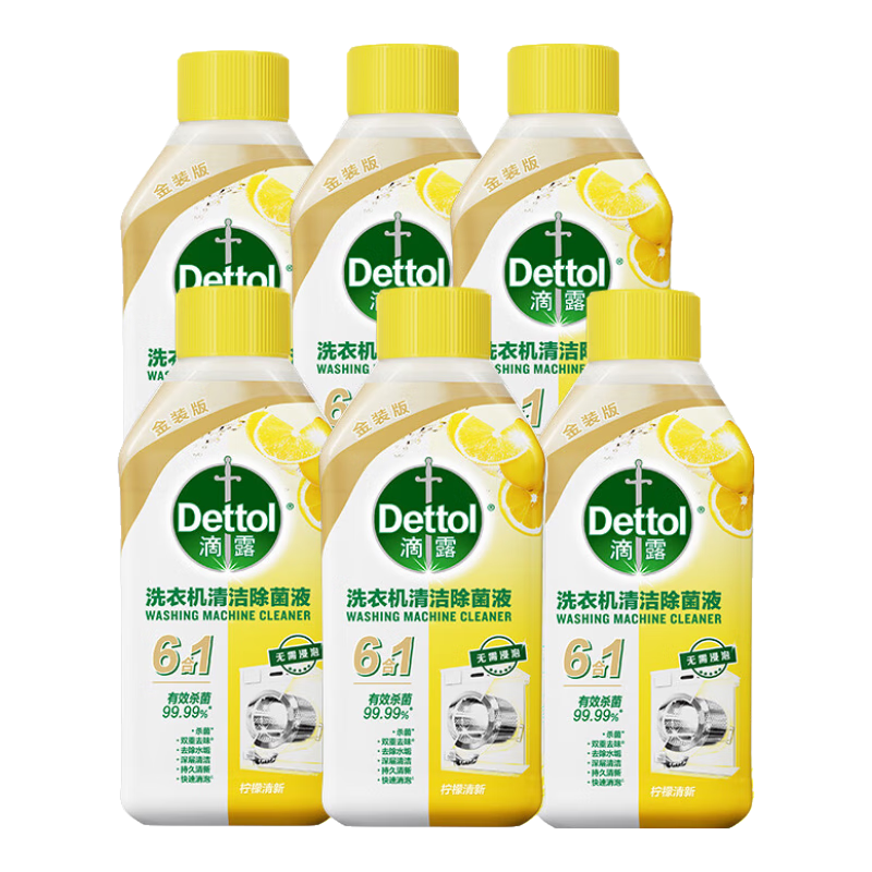 滴露洗衣机清洗剂清洁剂 洗衣机槽消毒液除菌剂液除垢剂 非泡腾片杀菌 【超值囤货】柠檬250ml*6瓶