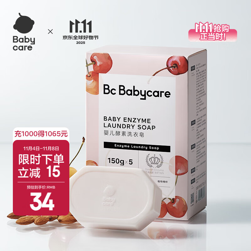 bc babycare婴儿抑菌洗衣皂内衣无酒精宝宝专用肥皂儿童尿布香皂 150g 5块 甜樱桃 【除菌新升级】