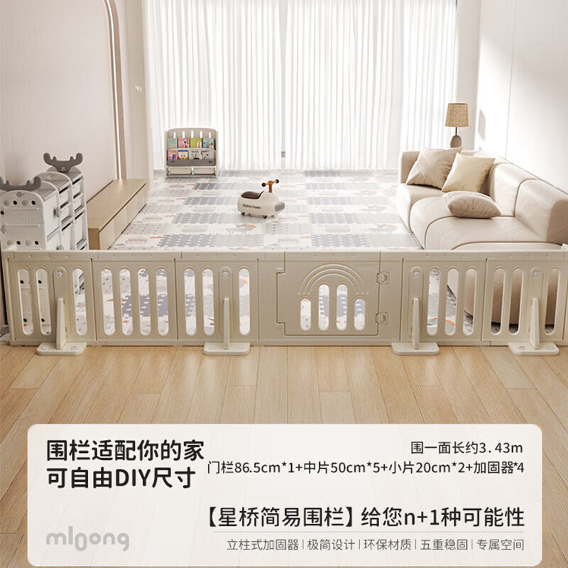 babycare游戏围栏爬爬垫客厅婴儿防护栏儿童宝宝爬行垫室内家用