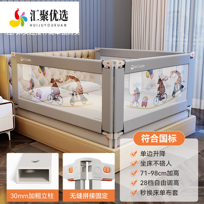 M-CASTLE慕卡索床围栏婴儿童防摔防护栏床上防掉挡板加高宝宝床边围栏护栏 马戏团防窒息安可靠豪华 ' 1.5米/单面装