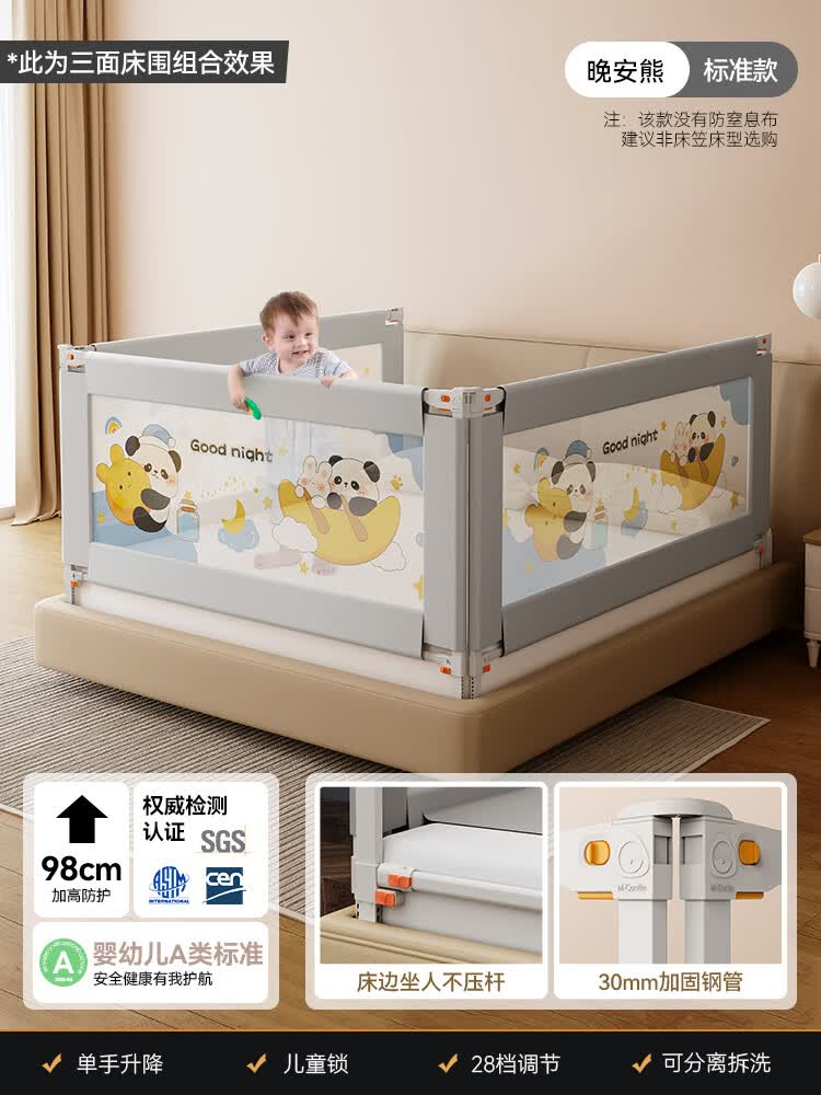 M-CASTLE床围栏儿童防摔防护栏宝宝挡板床边防掉床挡婴幼儿 晚安熊[标准款]促销款就少个防 两面装(1.5米+2.0米)